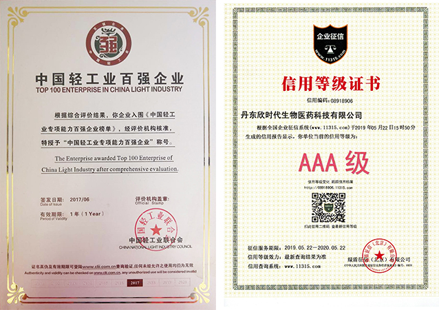了解丹東欣時(shí)代生物醫(yī)藥科技有限公司的資質(zhì)與榮譽(yù)